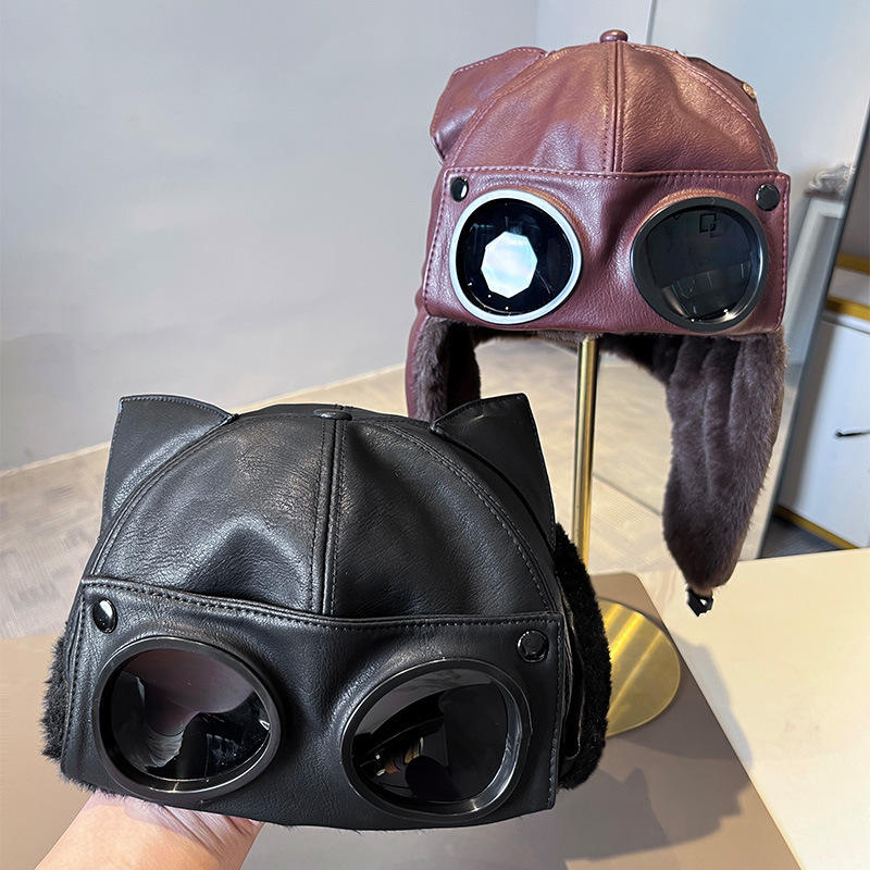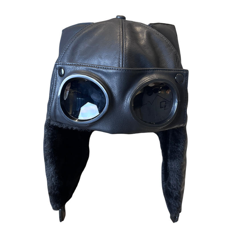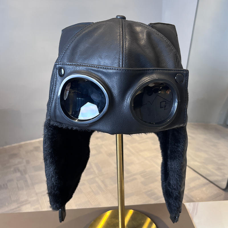 Cappello Invernale Retrò con Paraorecchie in PU, Stile Aviatore, Caldo e Antifreddo, 6 Pannelli, Decorazione con Rivetti, Casual e Personalizzato