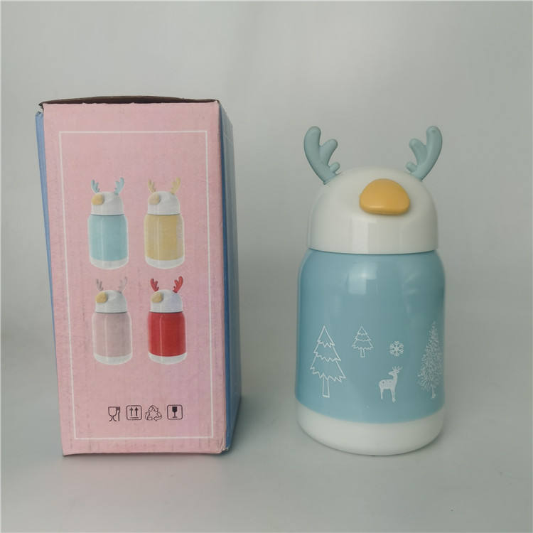 Borraccia Riutilizzabile per Bambini da 380ml con Manico, Tazza a Forma di Corna con Rivestimento in PP, Adatta per Acqua Bollente, Rotonda, Trasparente