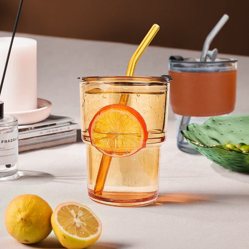 Tazze di vetro riutilizzabili personalizzate per caffè Espresso con bolle d'acqua con coperchi e cannucce tazza di vetro con pelle per evitare scottature