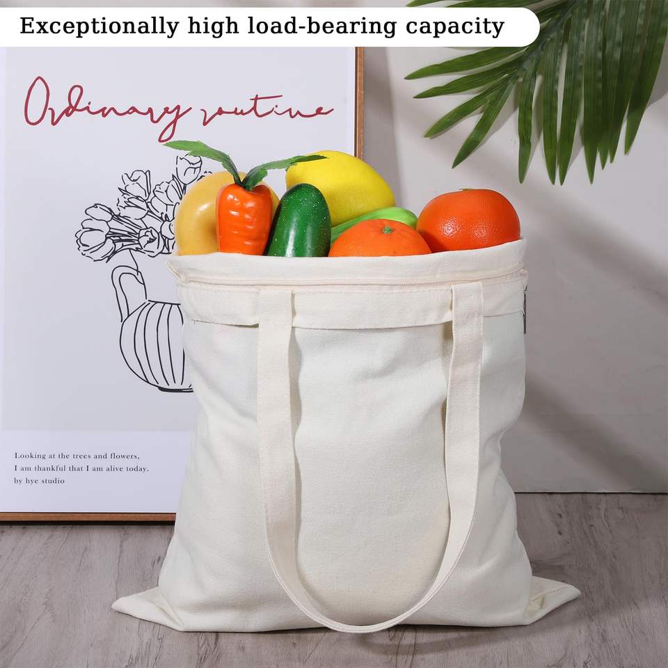 Borsa shopper riutilizzabile ecologica in tela naturale con cerniera per donna, ideale come regalo, per pubblicità e attività promozionali