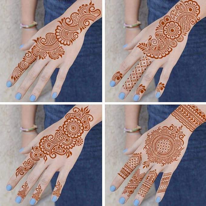Reusable Henna Tattoo Stencils Kit 9 Sheets of Mehendi Stencils for Hands Forearm DIY Indian Temp Tattoos for Women Girls