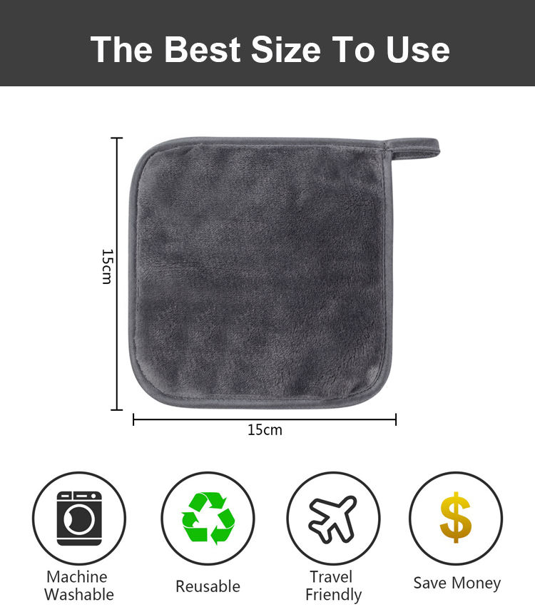 Riutilizzabile in microfibra per pulizia profonda acqua per pulire il trucco struccante asciugamano struccante per viso