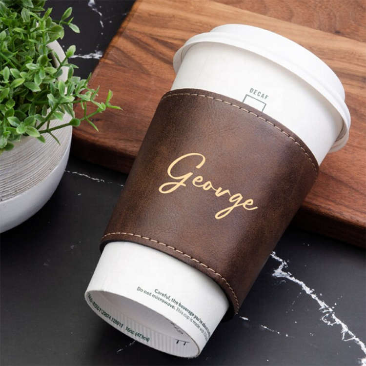 Portabicchieri in pelle riutilizzabile personalizzato con bolle di caffè e tazza da tè