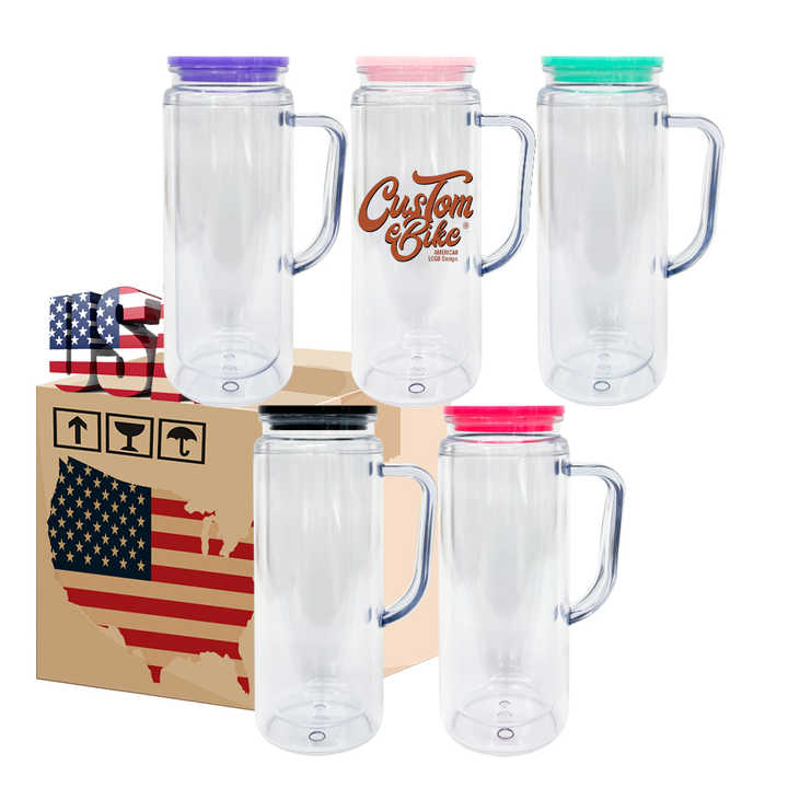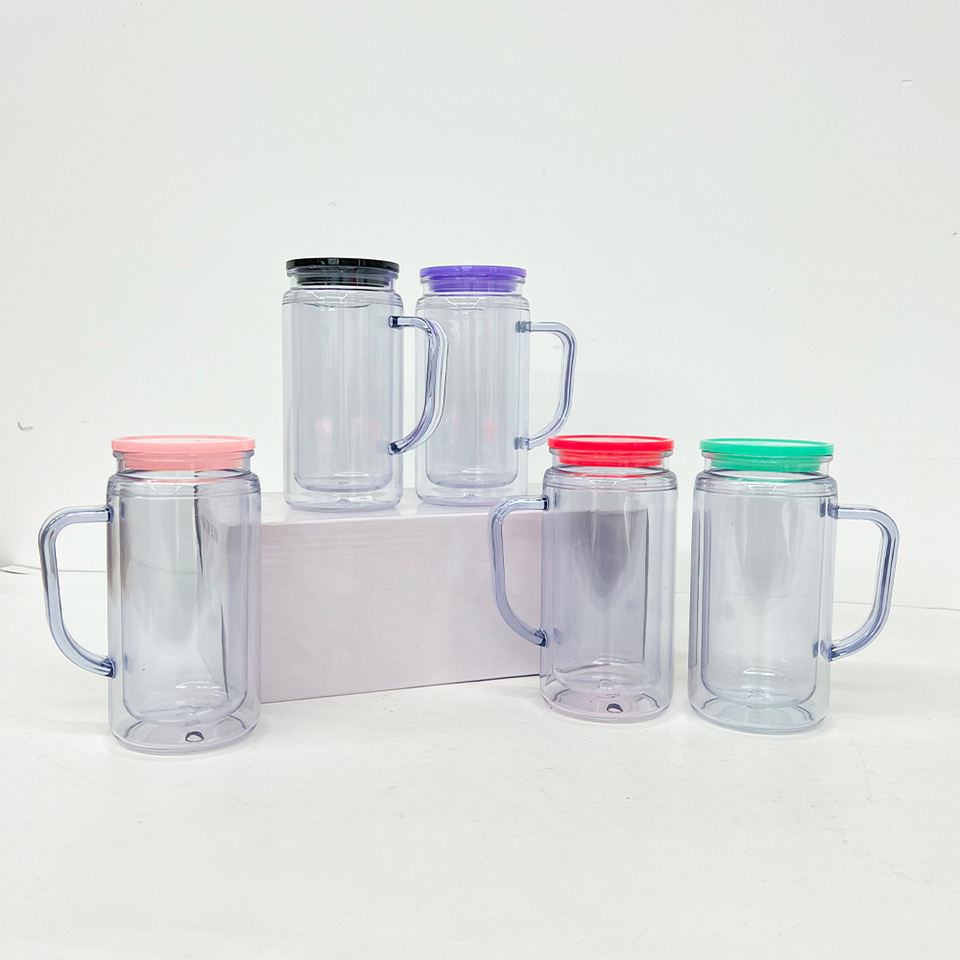 Tazze da Viaggio Riutilizzabili in Acrilico Trasparente da 12oz e 16oz con Manico e Tappo in Silicone, Stile Globo di Neve
