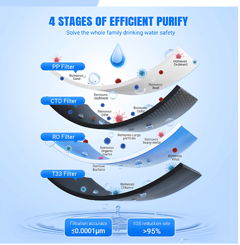 Filter stages:PPF/CTO/RO/Mineral/ALKALINE+