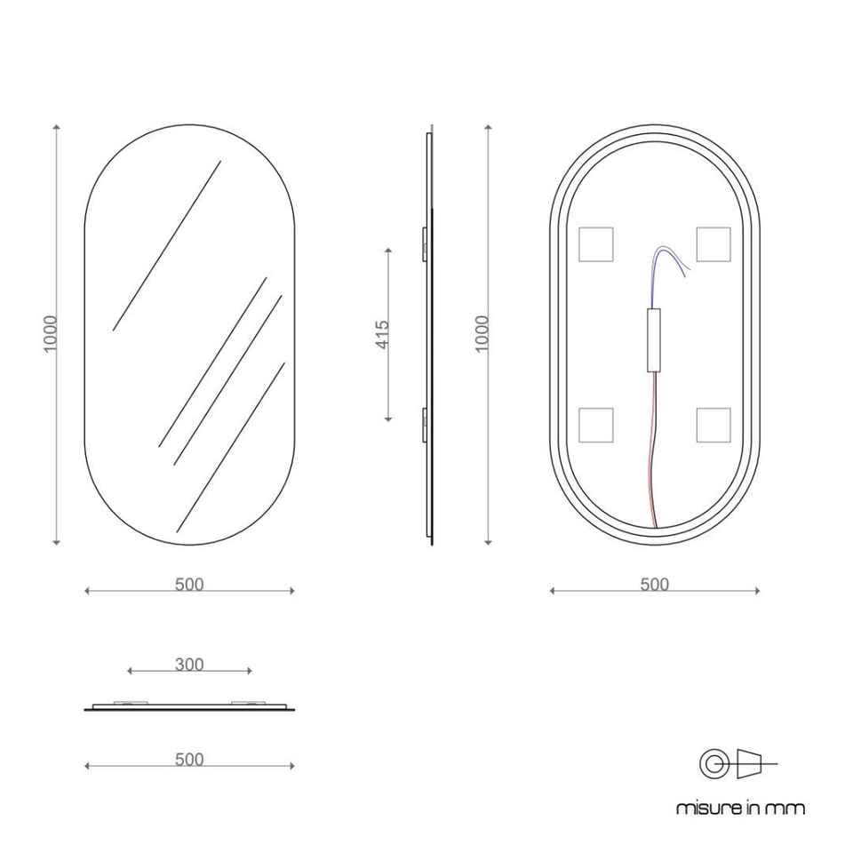 Specchio da Bagno Ovale Moderno in Vetro Reversibile 50x100 con Retroilluminazione LED