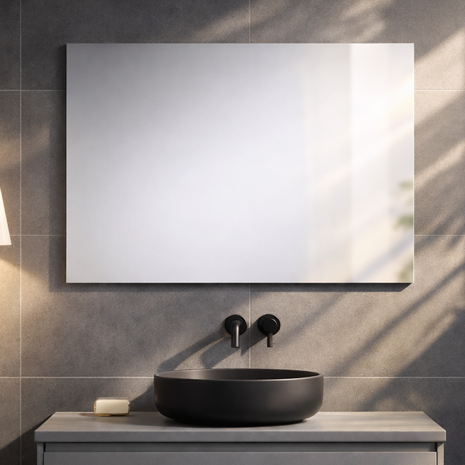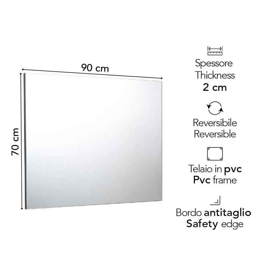 Specchio da Bagno Reversibile 90x70 cm con Cornice in Metallo, Antiappannamento, Montaggio a Parete, Design Minimalista
