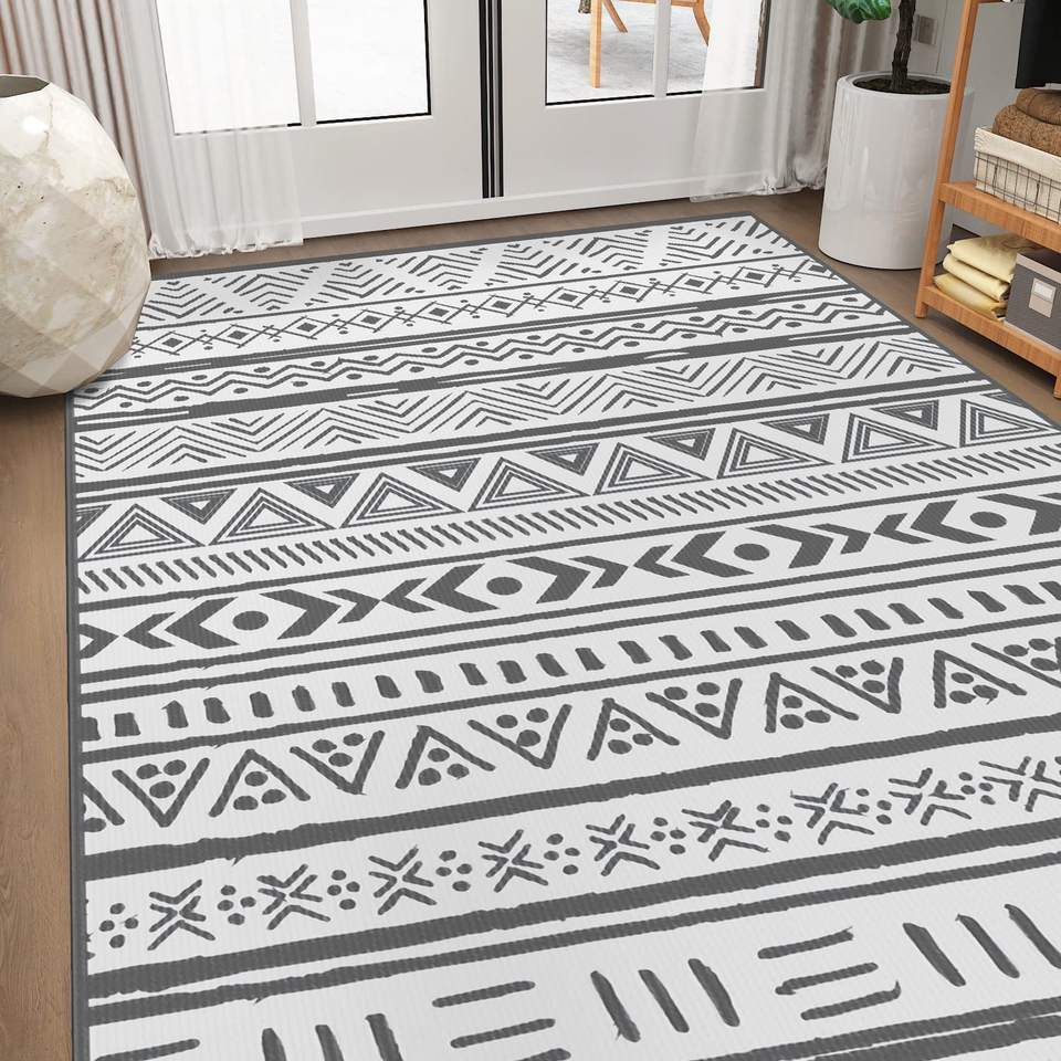 Tappeto Reversibile in Paglia Intrecciata Impermeabile per Esterni, Camper, Spiaggia, Patio, Giardino, Piscina, Terrazza, Picnic, Campeggio, Lavabile
