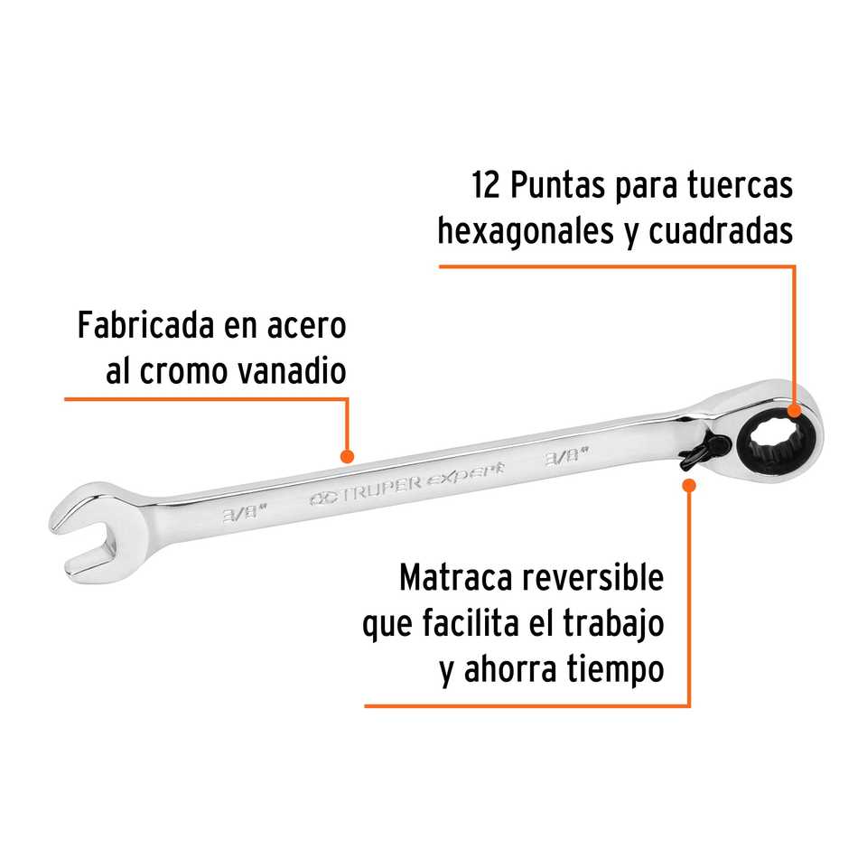 Reversible ratchet combination wrench 3/8'x158 mm long, Expert Box of 3, 13425