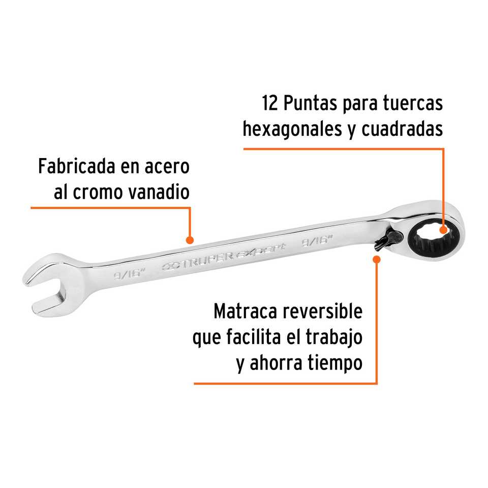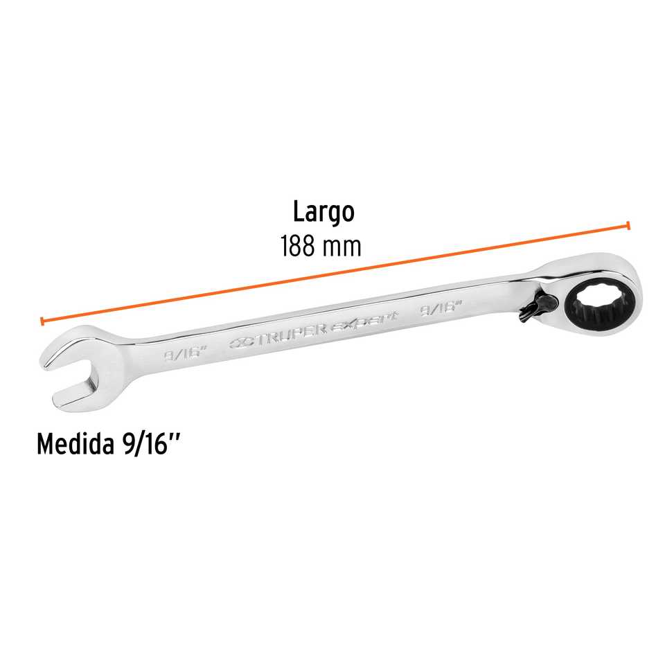 Reversible ratchet combination wrench 9/16'x188 mm long, Expert Box of 3, 13548