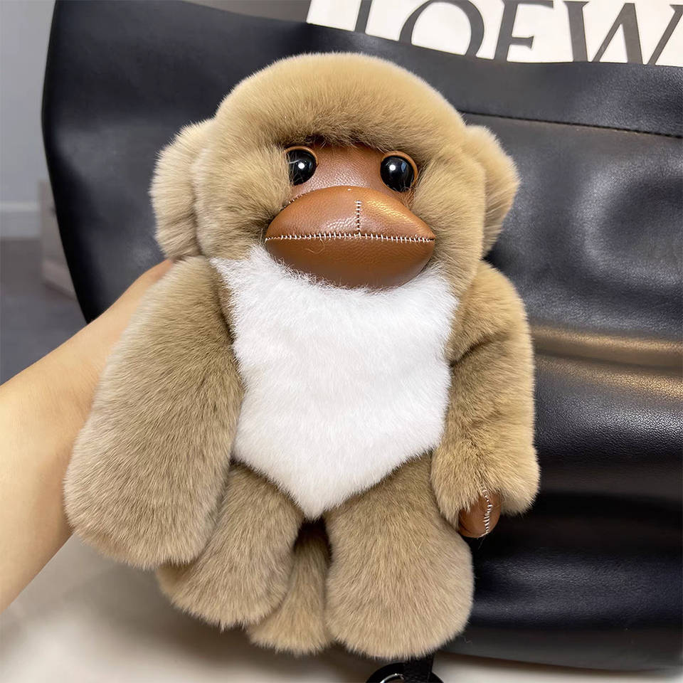 Portachiavi con Peluche di Scimmia in Pelliccia di Coniglio Rex, Morbido e Soffice, Orangutan, Gorilla Nero, Animali di Peluche