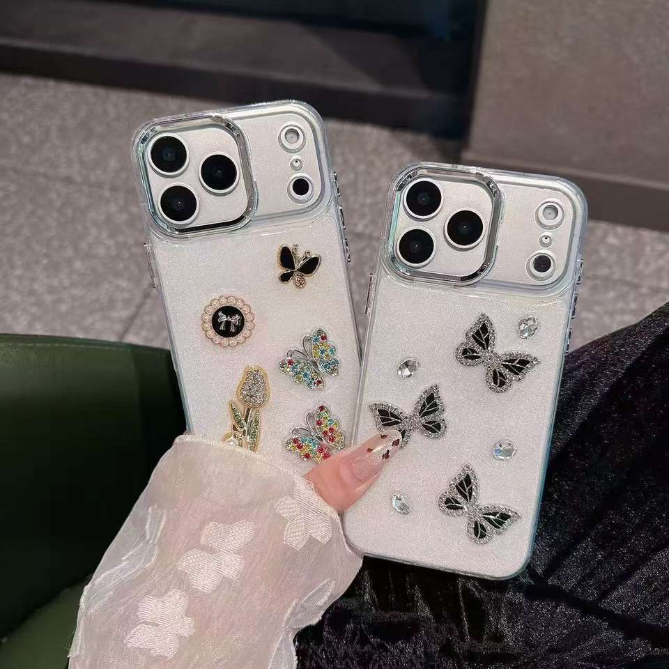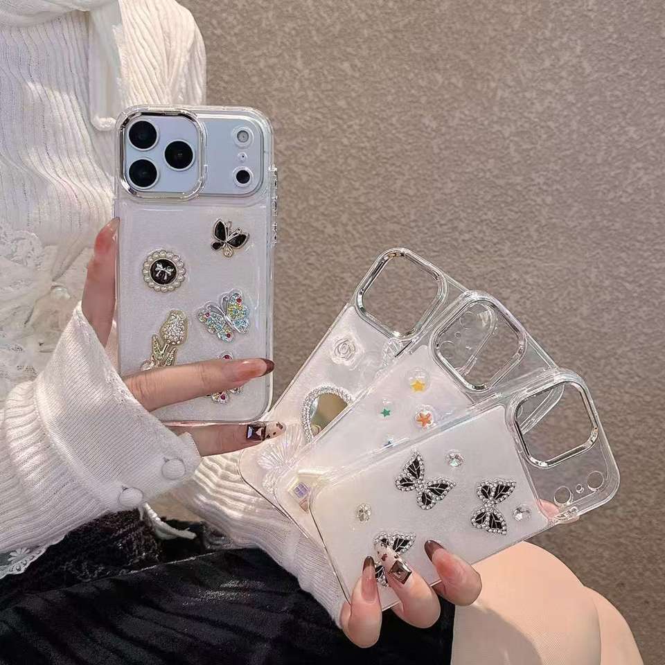 Rhinestone Dripping Glue Shell Transparent Shockproof for Case with Butterfly Rainbow Clouds and Raindrops Design for