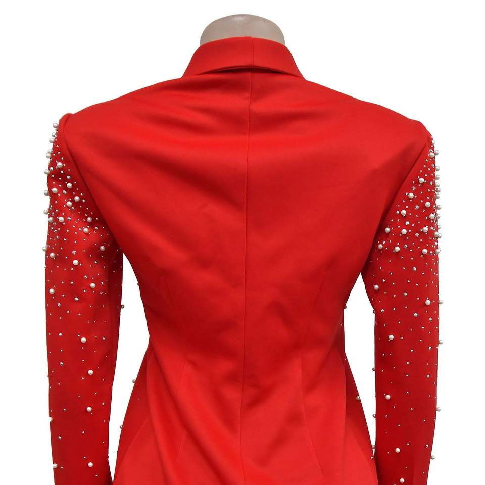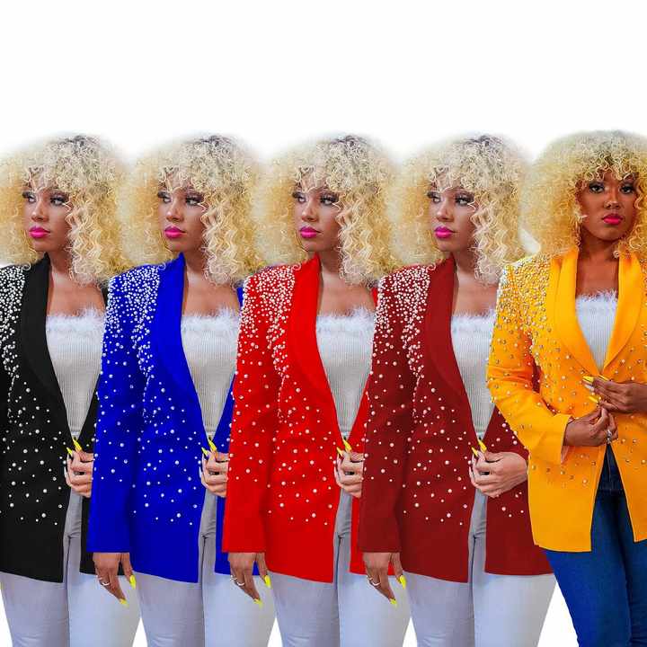Keywords:women solid color bubble bead large lapel long sleeve wear