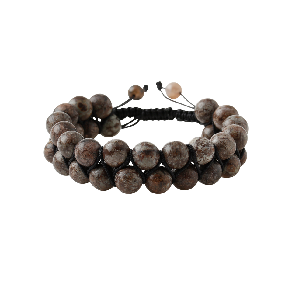 Bracciale in Pietra Naturale Rhyolite 8mm a Doppia Fila con Macramè