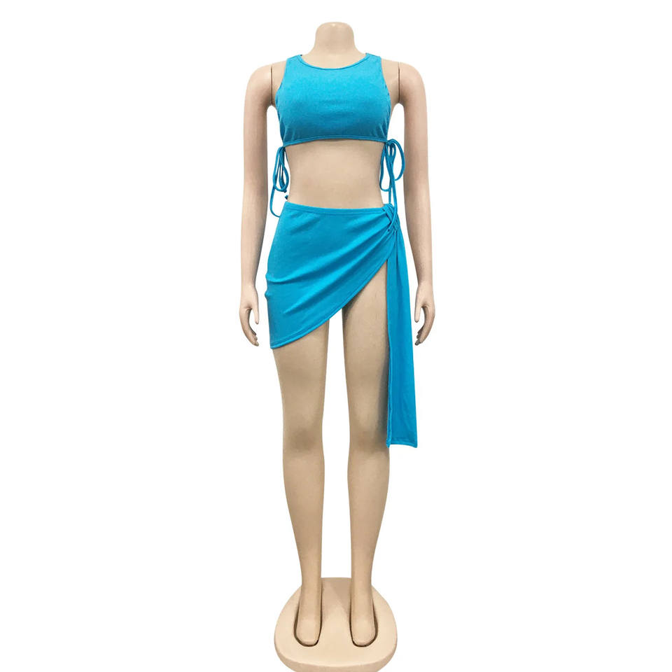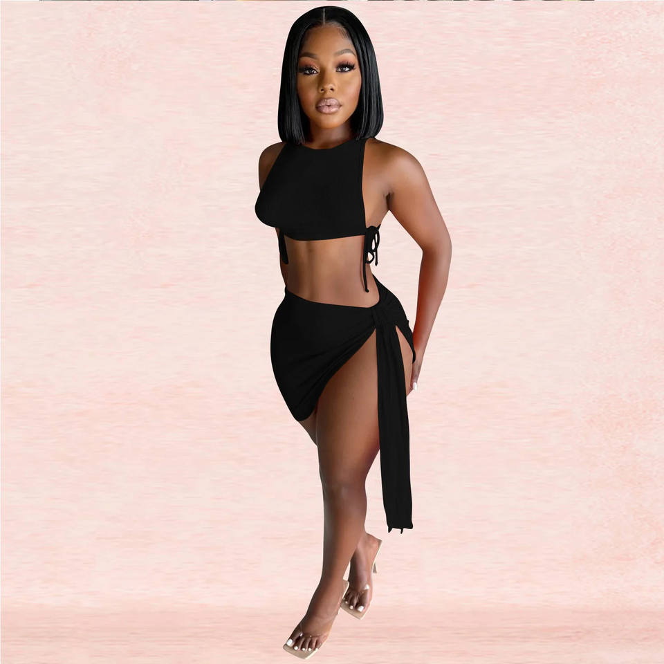 Set Mini gonna da spiaggia aderente in due pezzi a coste