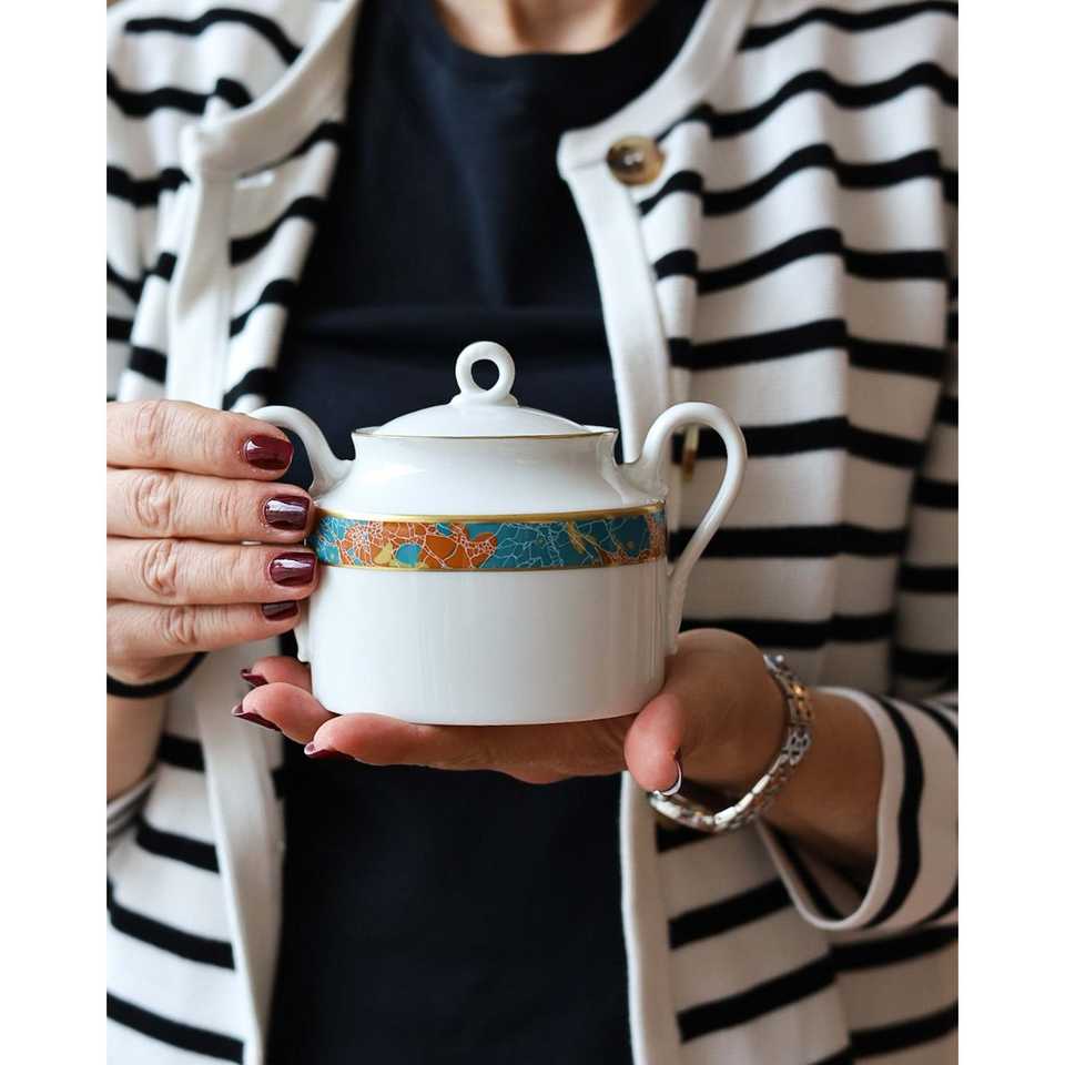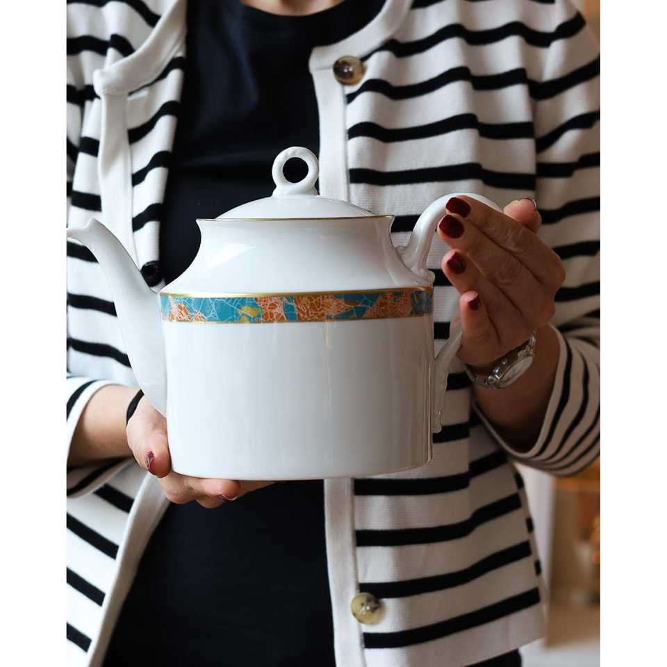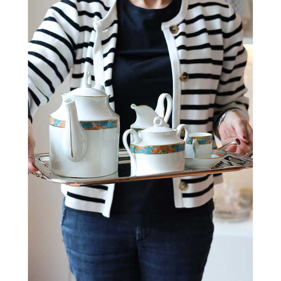 Servizio da Tè Completo Richard Ginori 6 Pezzi Stile Impero con Bordo Astratto - Set di Stoviglie con Consegna Manuale