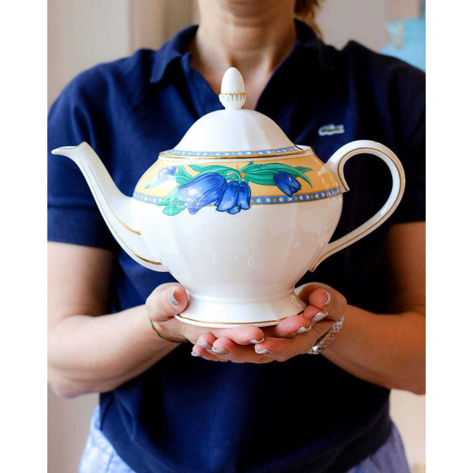 Richard Ginori Duchess-shaped Six-Piece Tea Set with Blue Tulip Decoration Elegant Tableware