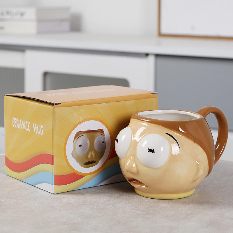 Tazza in Ceramica Stile Rick Old Man Morty Creativa Stile Cartone Animato 3D Adatta al Microonde Isolata Forma Irregolare Tazza da Caffè Regalo