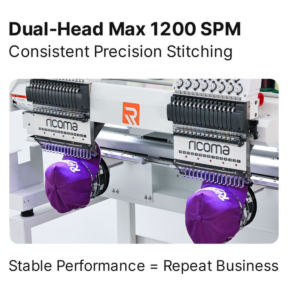 Ricoma Marquee 1502 Commercial Embroidery Machine, 19.7" X 14.2" Embroidery Area, 2-Head 15-Needle Embroidery Machine