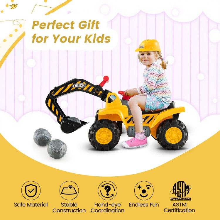 Giocattolo Bulldozer Cavalcabile con Pala Funzionante e Casco di Sicurezza