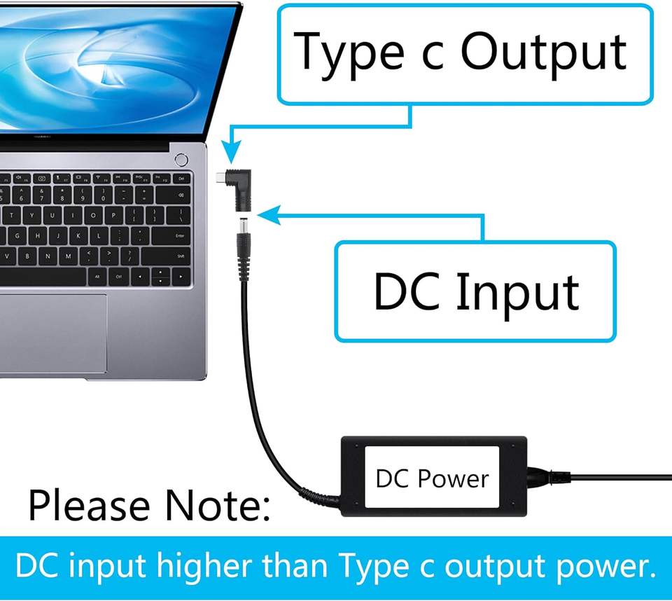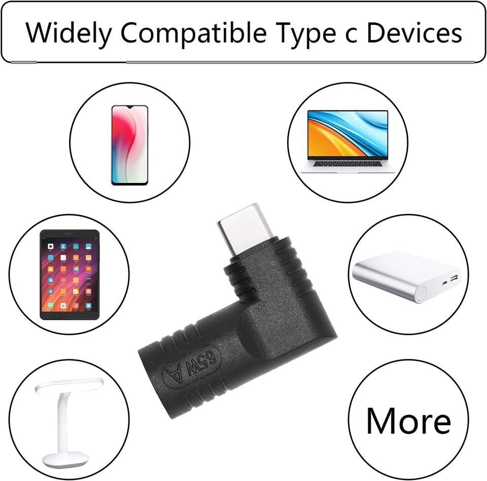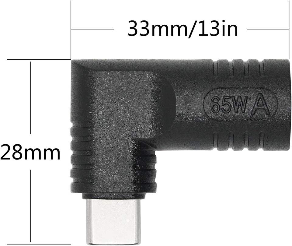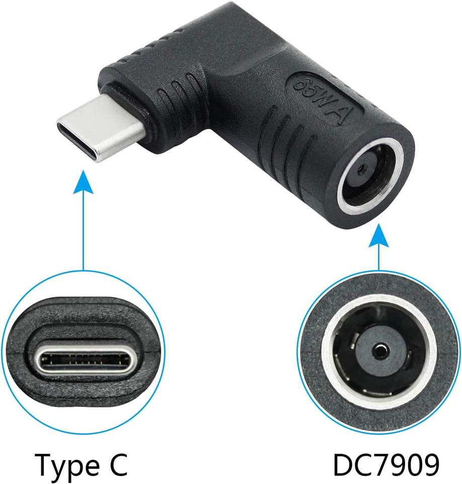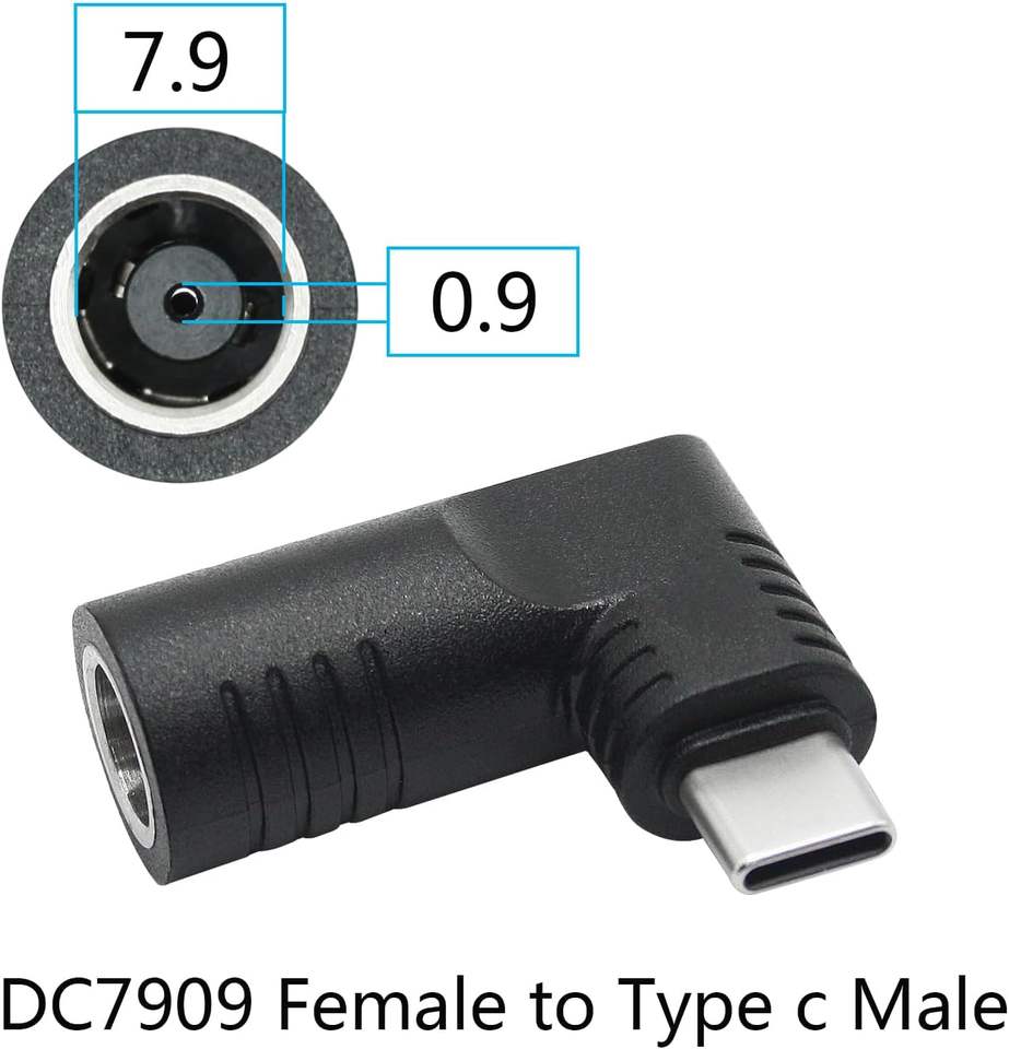 Adattatore connettore DC 7909 ad angolo retto a USB C, adattatore di ricarica PD 65W a 90 gradi da DC 7,9 mm x 0,9 mm a spina maschio USB tipo C
