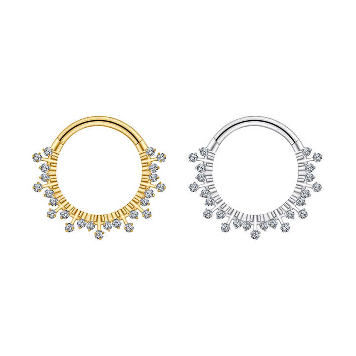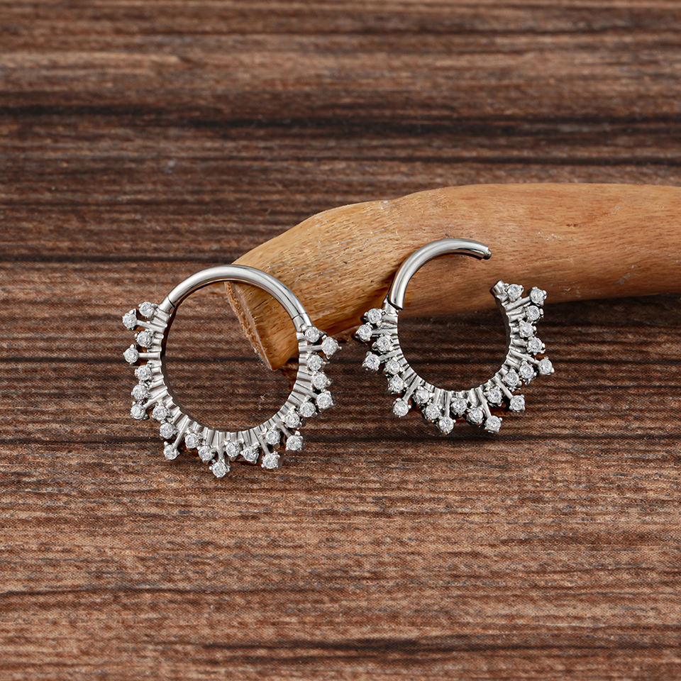 Right Grand Anello a Cerchio Segmentato con Cerniera in Titanio ASTM F136 16G con Zirconia Cubica (CZ) a Motivo Sunburst, Orecchino Daith, Gioiello per Piercing al Naso Septum