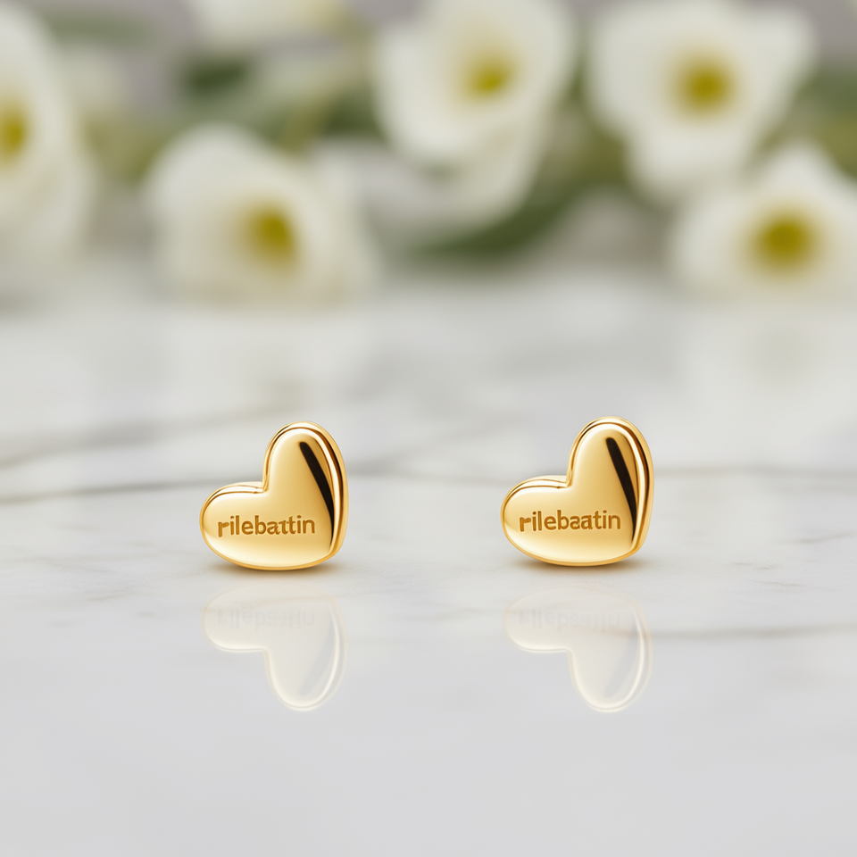 Rilebattin Heart Stud Earrings 18K Solid Gold Women's Fine Jewelry Everyday Wear