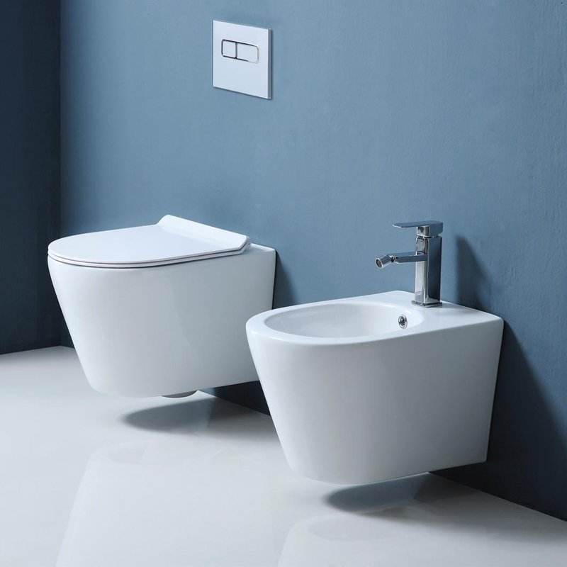 Vaso sospeso smeraldo senza bordo senza copertura bianca lucida Brida Slim Soft Close - Meda