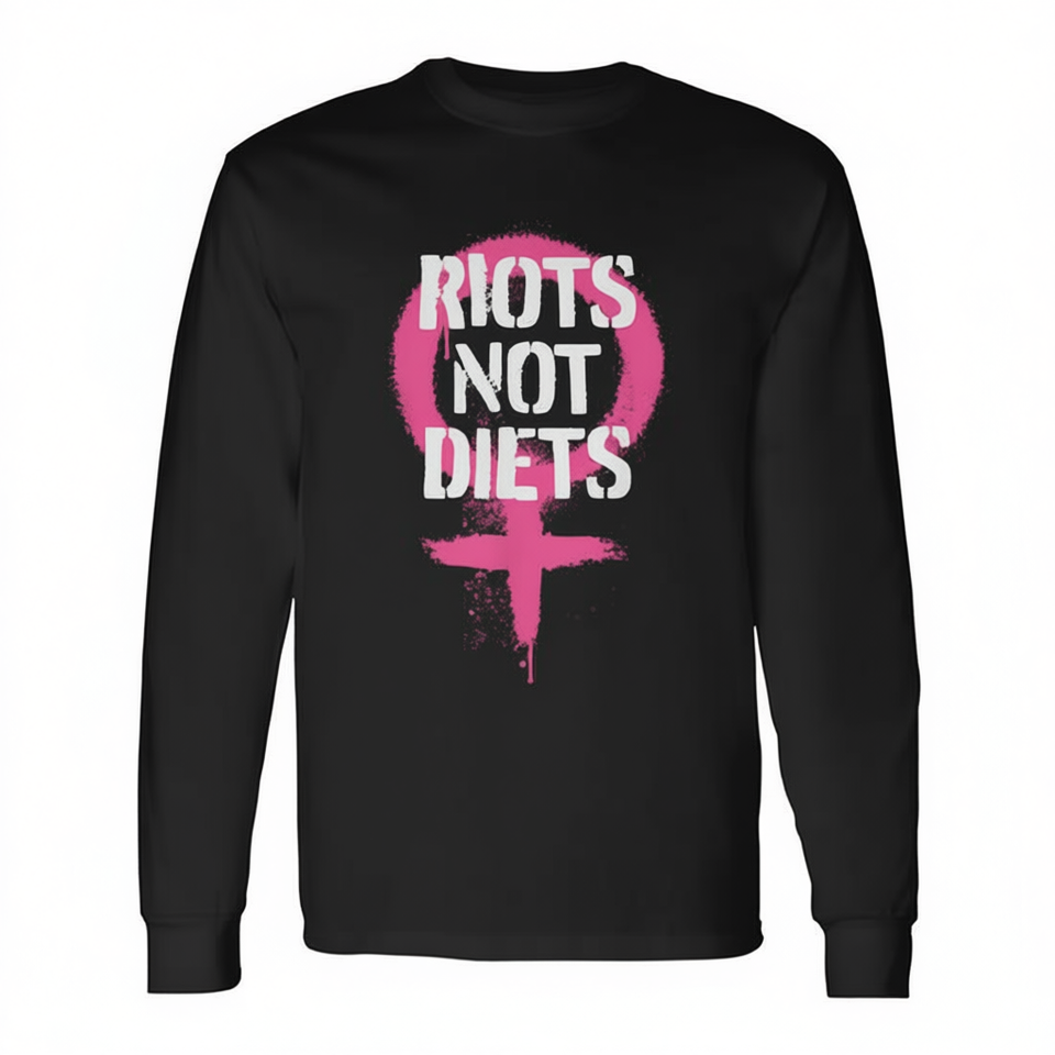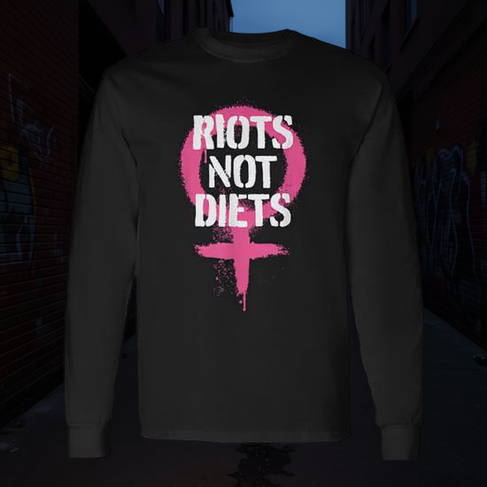 T-shirt a maniche lunghe con grafica punk femminista Riots Not Diets