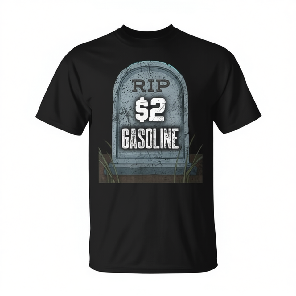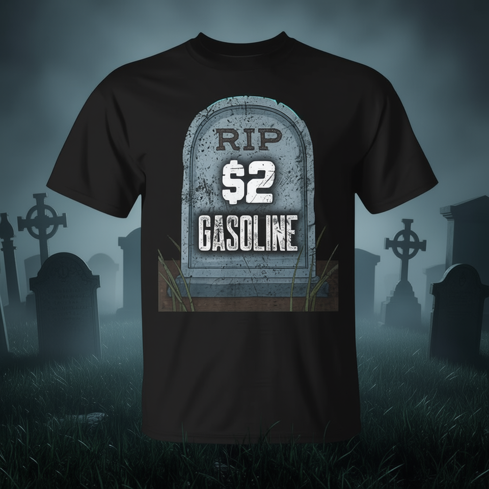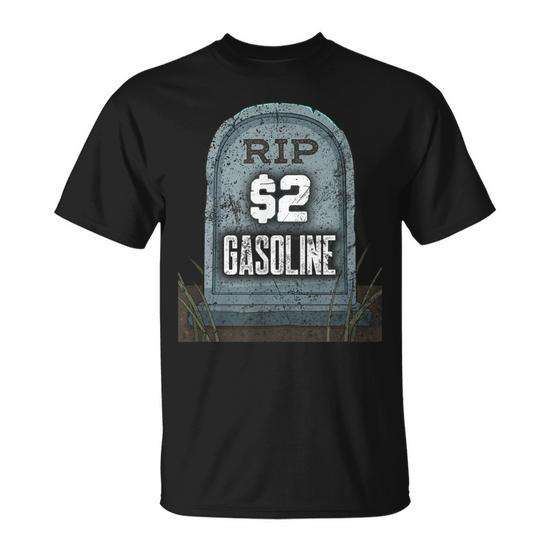 T-shirt Rip $2 Gasoline Grave con design gotico e scherzo sul prezzo del carburante