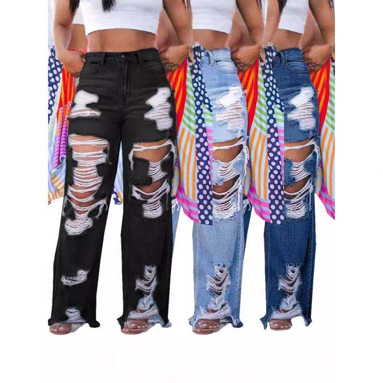 Ripped Women's Jeans, Washed and Torn with Raw Hem