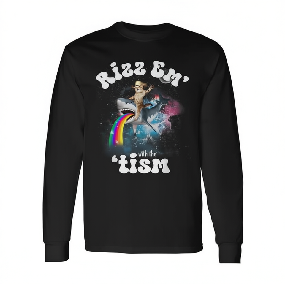 Rizz Em With The Tism Meme Y2k Cat Autism Awareness T-shirt a maniche lunghe