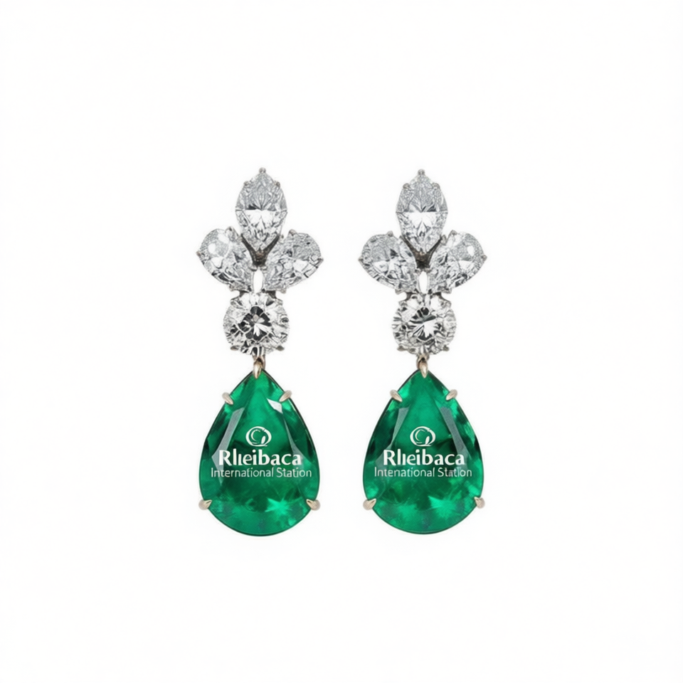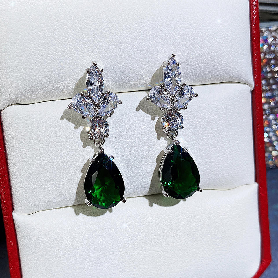 Orecchini Pendenti Smeraldo Rleibaca con Diamanti Verdi Taglio Marquise, Montatura a Griffe, Gioielli di Lusso da Donna per Feste e Moda