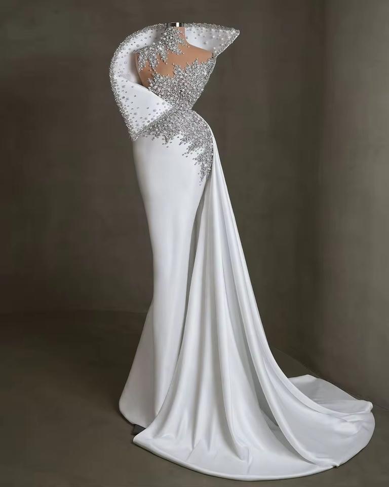 Robes De Soirée Prom Dress Aso Ebi Crystal Pearl Mermaid Party Birthday Engagement Gowns Arabic Off Shoulder Evening Dress