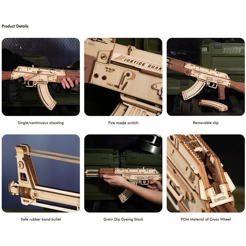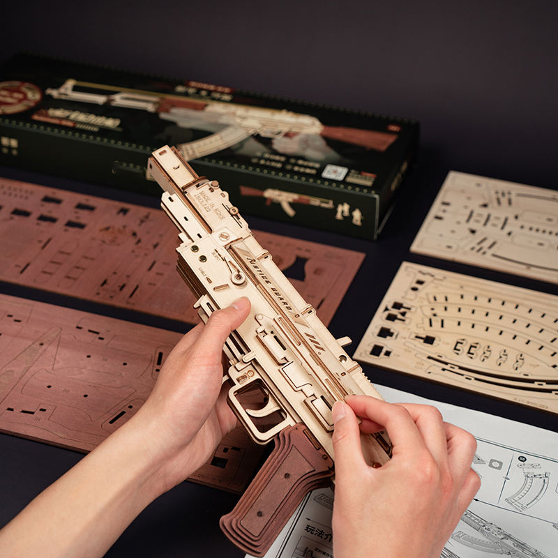 Robotime Rokr Tiktok Hot Selling 3D Wooden Puzzles LQ901 Rubber Band Gun Model Kit Toy Guns for Adults