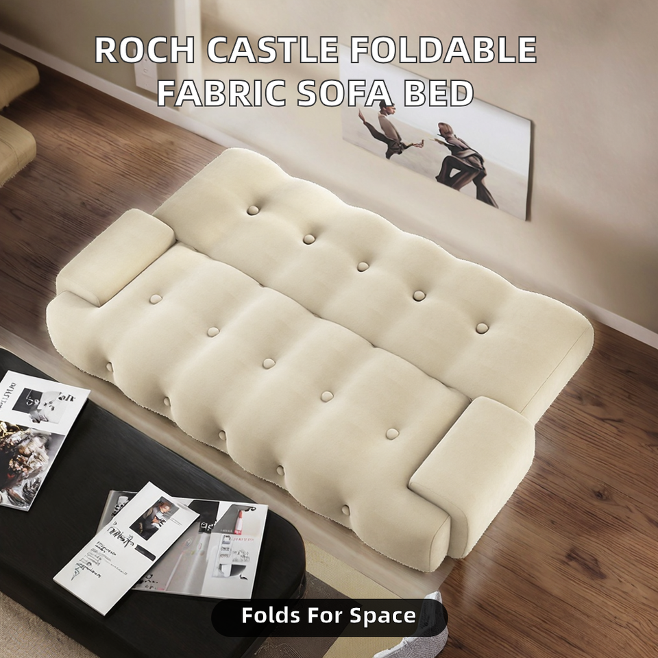 Divano Letto Pieghevole Moderno Roch Castle in Tessuto con Struttura in Legno per Hotel, Soggiorno e Camera da Letto