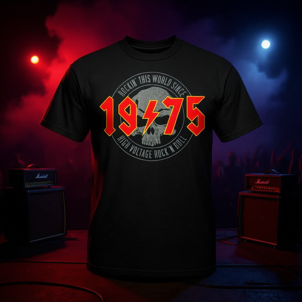 T-shirt vintage per compleanno Rock And Roll Heavy Metal 1975