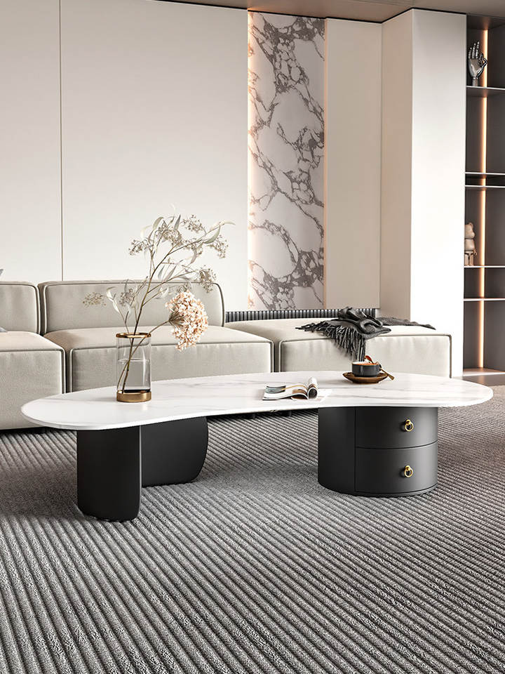 Tavolino da Caffè in Pietra con Cassetto Sagomato, Design Moderno per Piccoli Soggiorni, Arredamento Casa