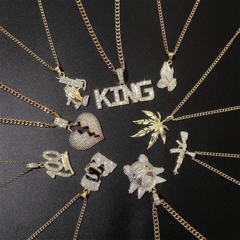 Rock Punk placcato oro catena cubana donna uomo pieno diamante dollaro Boss regina croce cuore re leone Hip Hop collana gioielli