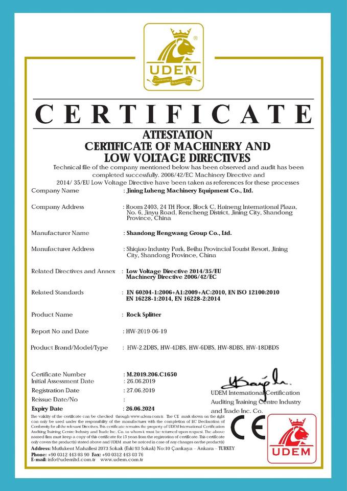 Machinery Test Report:Provided