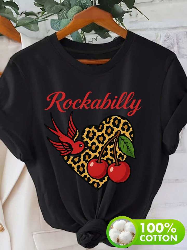 Rockabilly Women's Plus Size T-Shirt Short Sleeve Round Neck Cotton Leopard Heart Cherry Print Spring Summer Casual Top