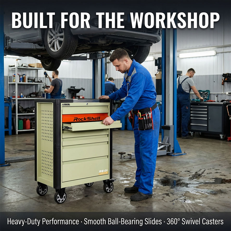 Carrello Portautensili Rockshell di Alta Qualità in Acciaio Inox, Cassetta degli Attrezzi Professionale di Grande Capacità per Officina