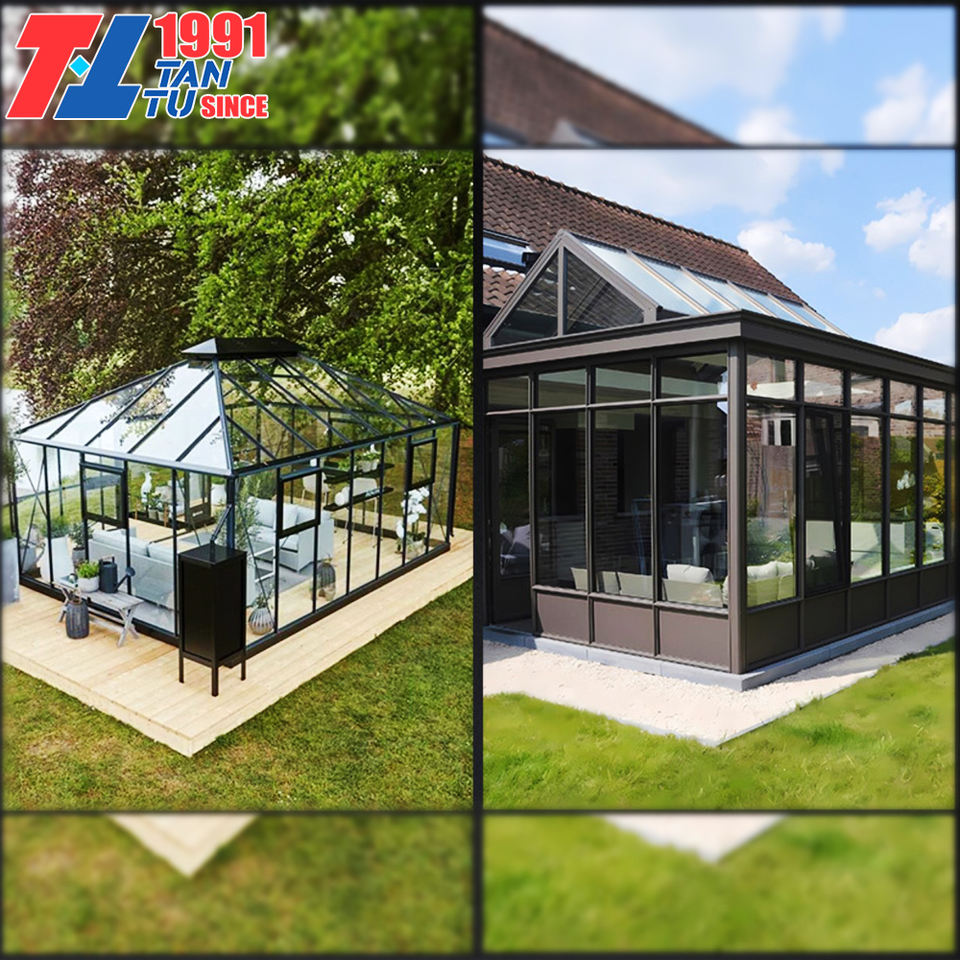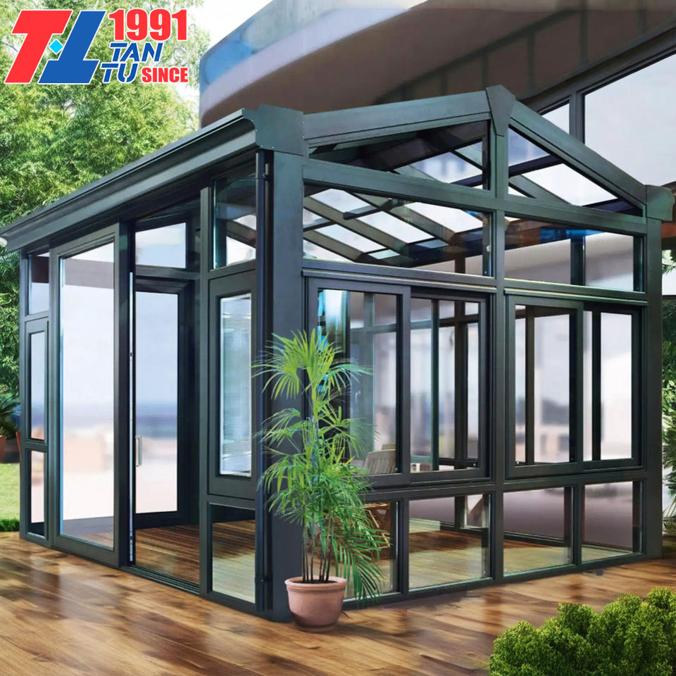 Rogenilan Farmhouse Steel Low-e Glass Pergola With Sliding Doors Outdoor Glazing Sunroom 4 Season Garden