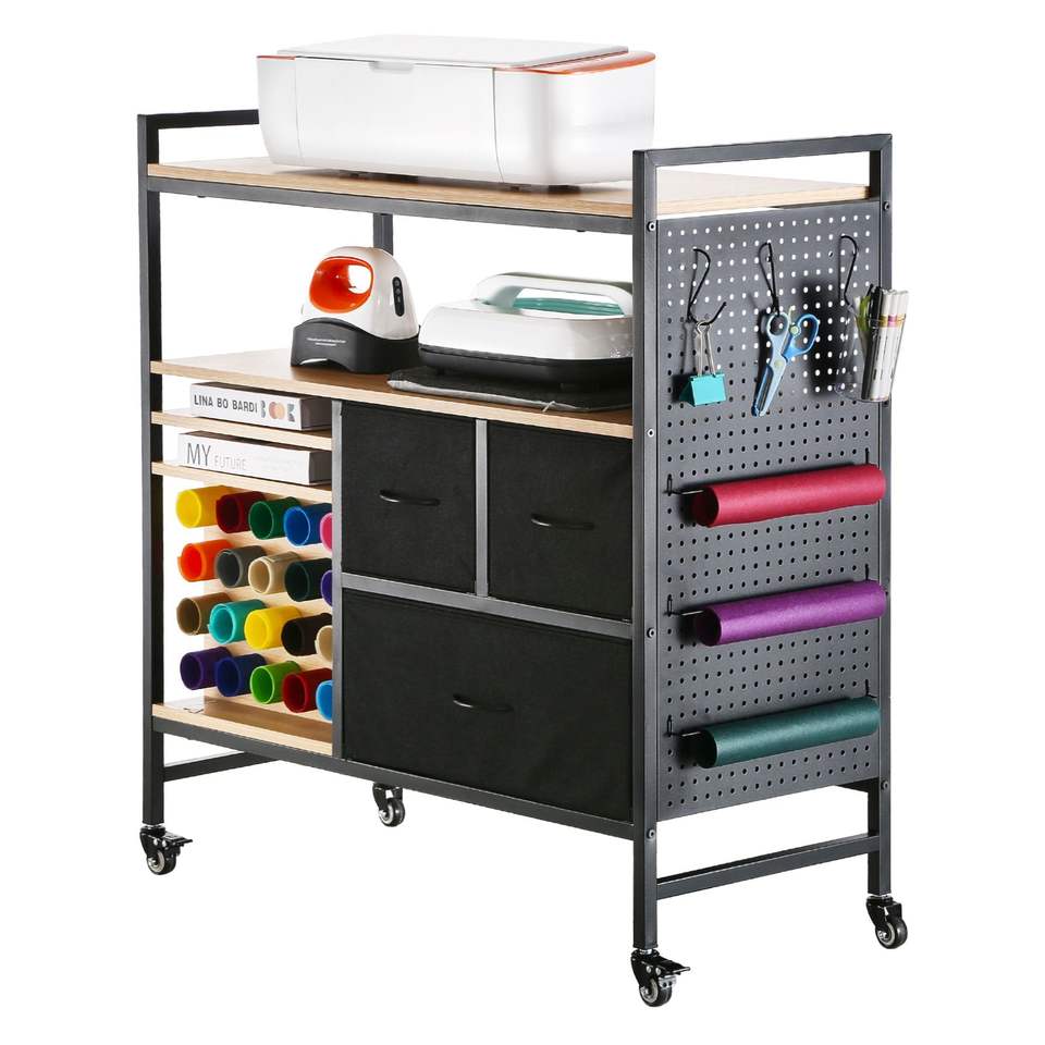 Carrello Portaoggetti con Ruote e 20 Contenitori & 3 Cassetti, Compatibile con Macchina Cricut, Postazione di Lavoro per Organizzazione Artigianale