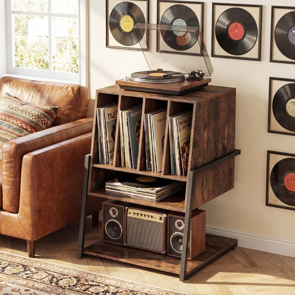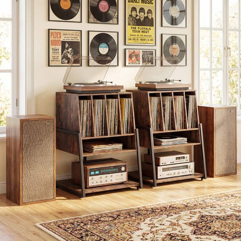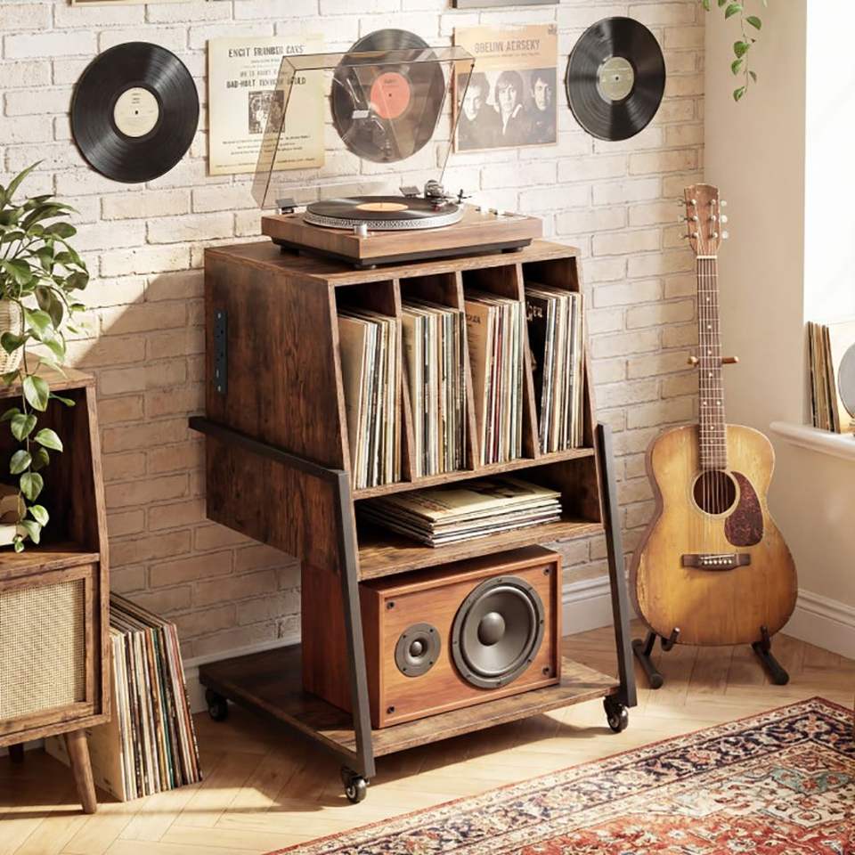 Supporto Girevole su Ruote con Prese di Corrente per Giradischi e Strumenti Musicali