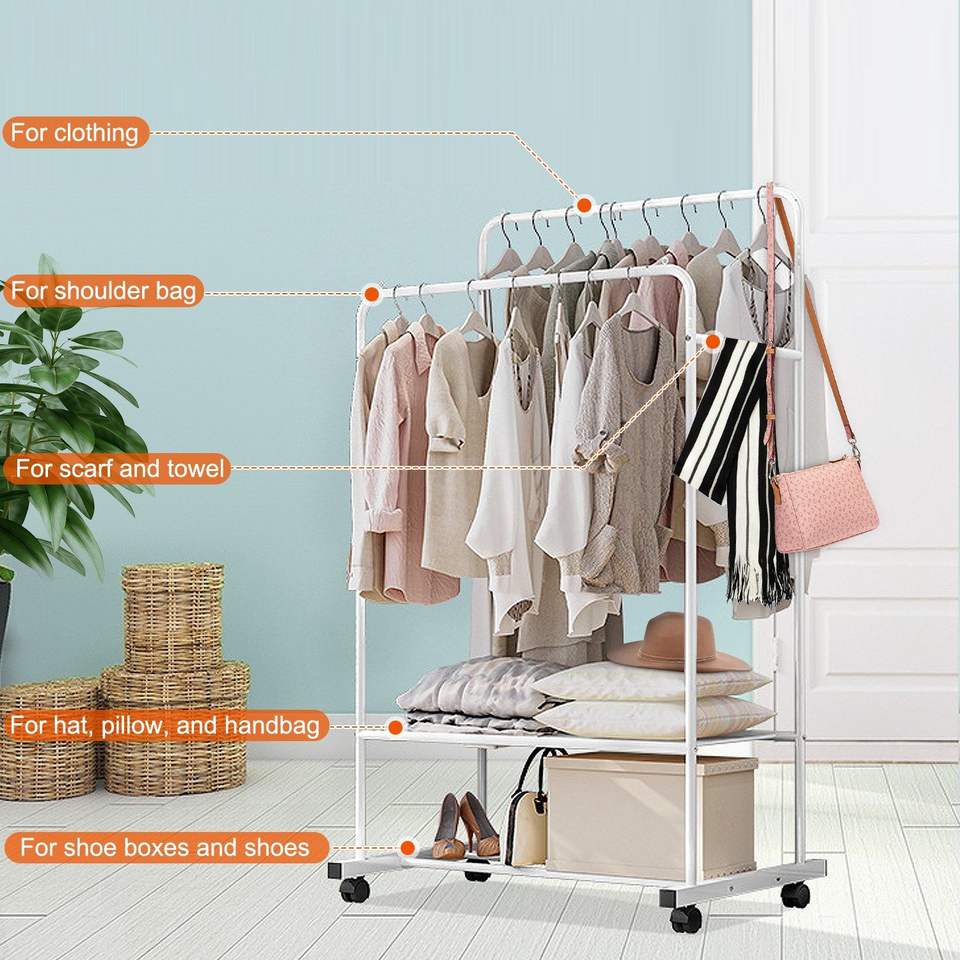 Organizzatore per Vestiti con Ruote, Appendiabiti con Espositore per Cuscini, Asta Appendiabiti per Scarpe e Abbigliamento