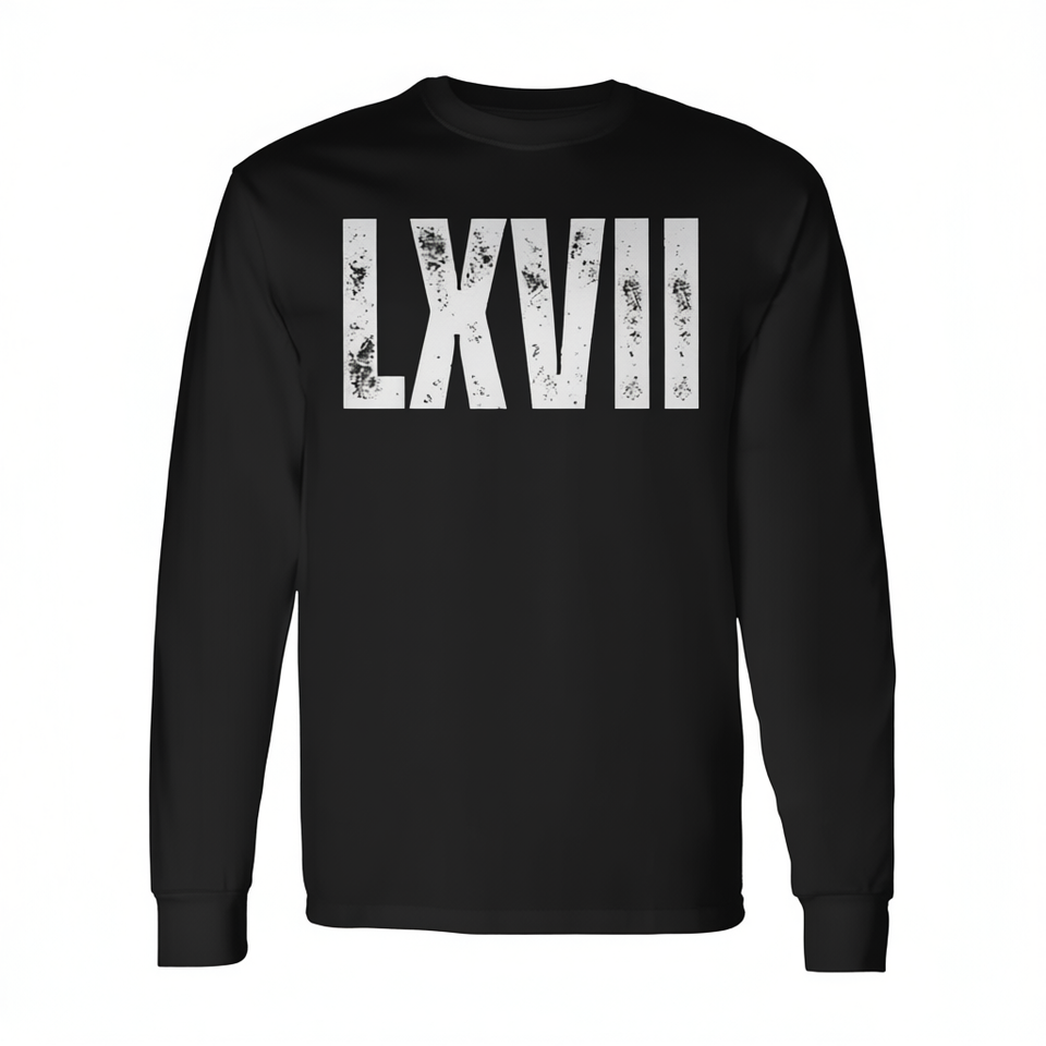 T-shirt a maniche lunghe unisex per adulti con stampa serigrafica Roman Numerals Lxvii Meme Gen Slang