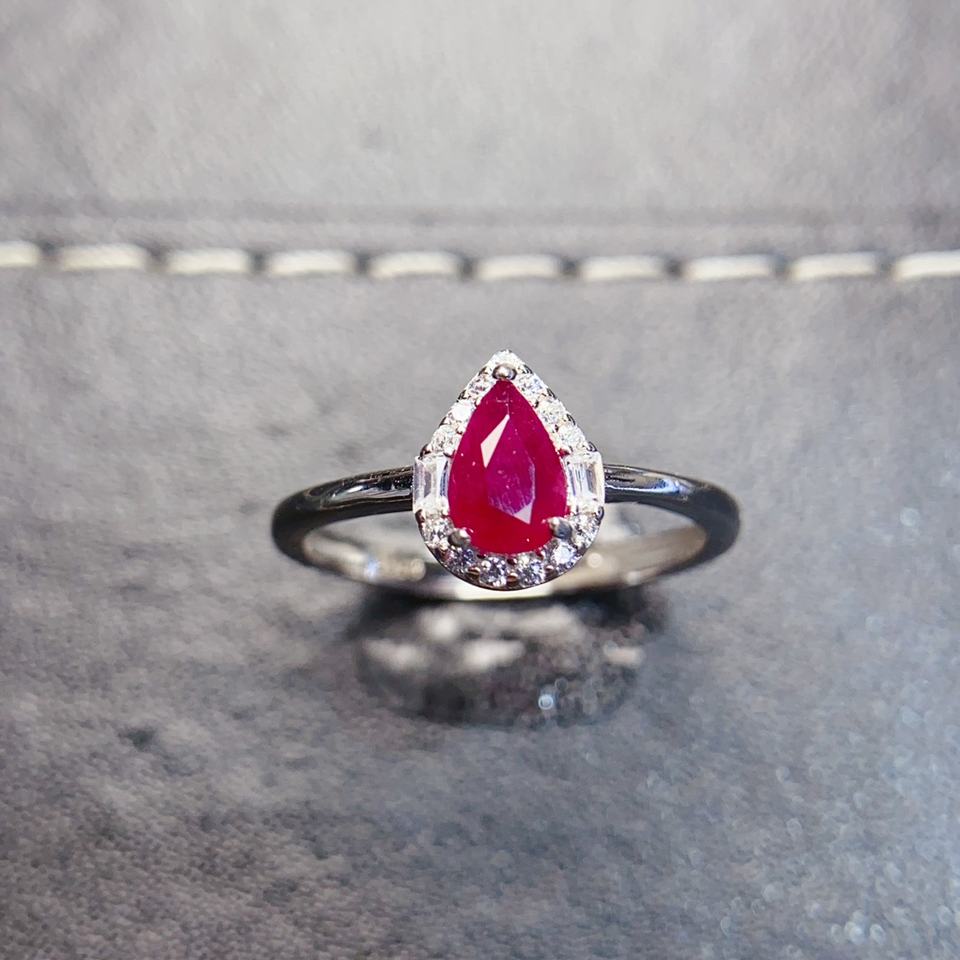 Romantic 925 Silver Ruby Ring 14K Gold Plated Wedding or Engagement Band with Natural Stone IGI Certified