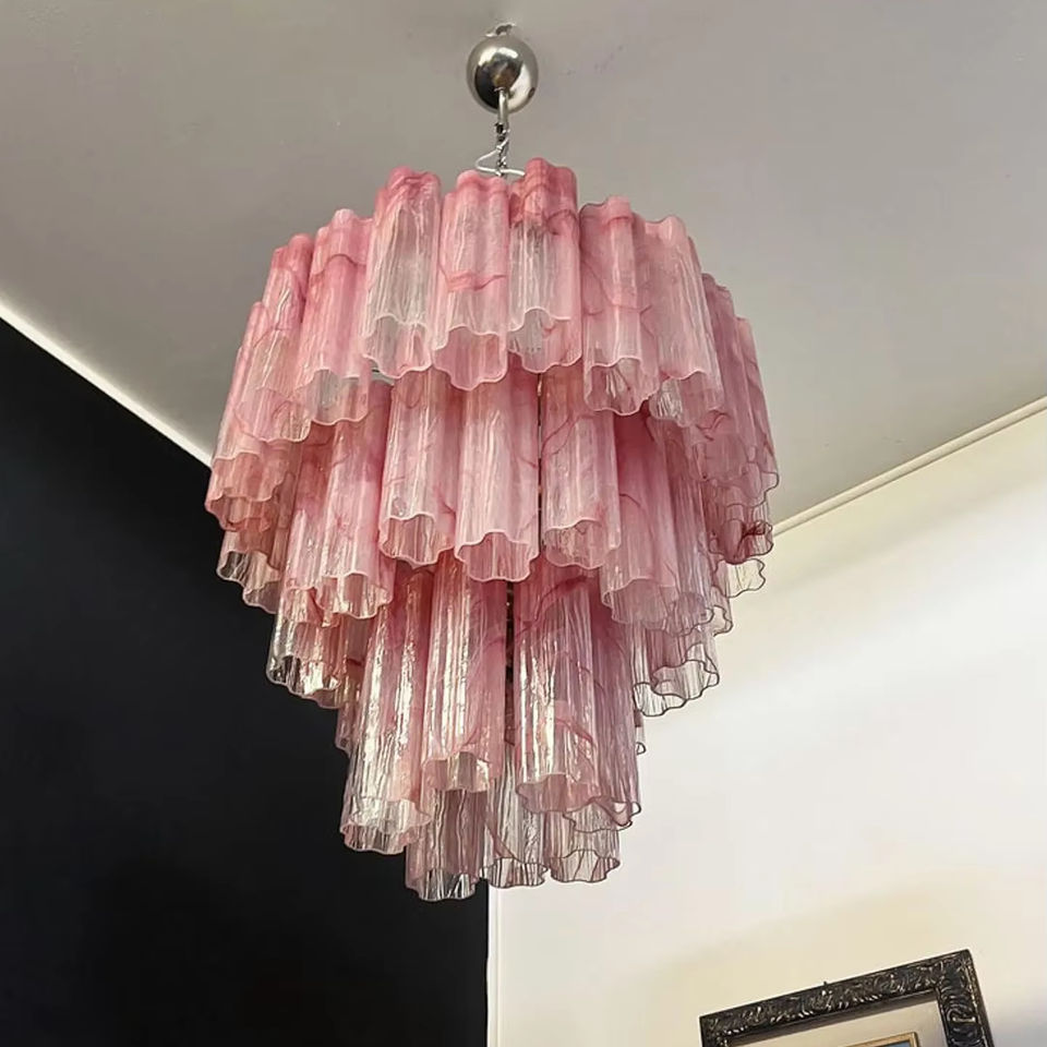 Romantic Alabaster Pink Glass Tube Chandelier Western Style Restaurant Handmade Pendant Chandeliers