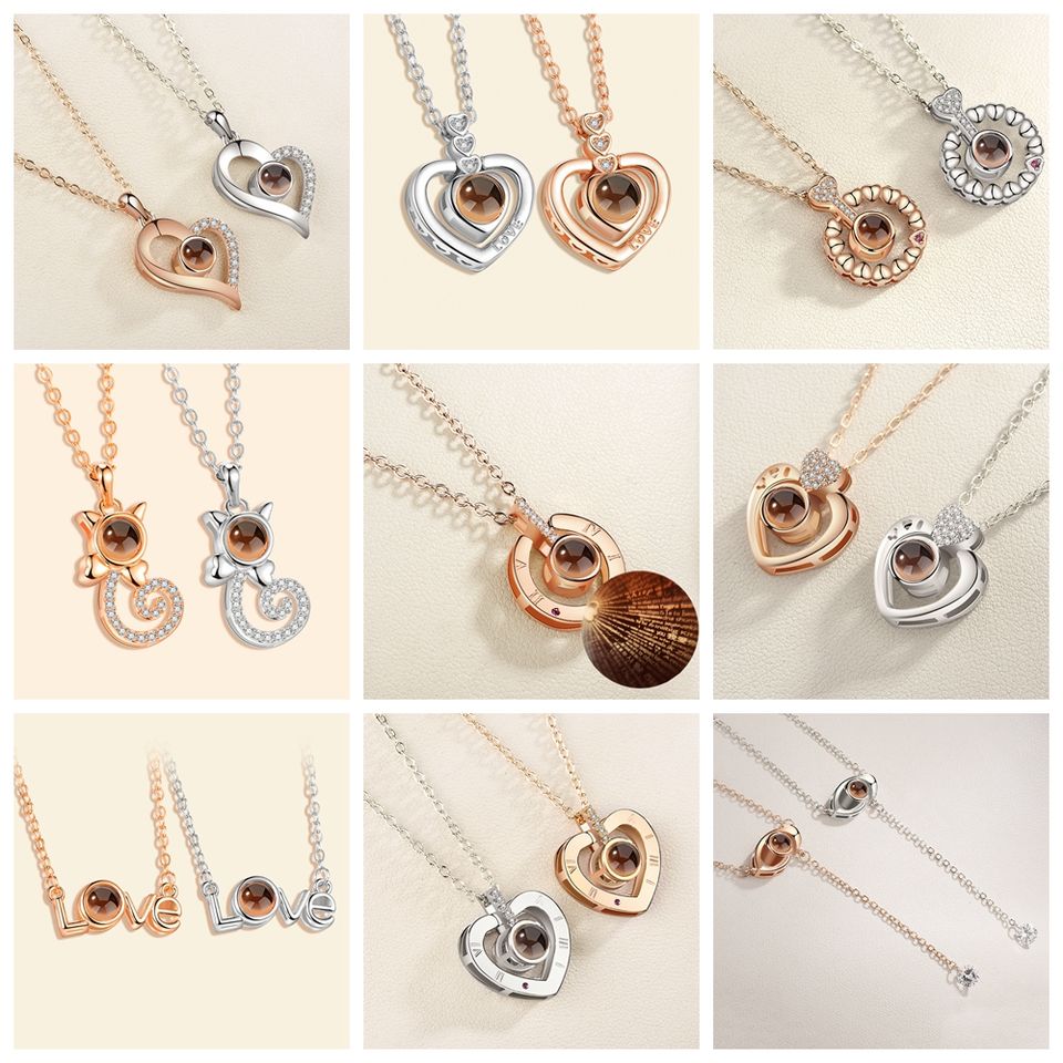 Coppie romantiche 100 lingue personalizzate oro argento ti amo memoria collana proiezione ciondolo gioielli regali